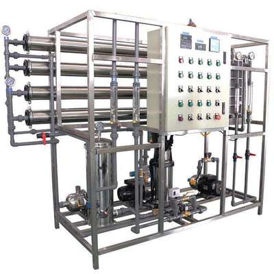 Esta Máquina de Água por Osmose Reversa foi projetada para tratamento de água doméstica e subterrânea. Remove efetivamente íons, compostos orgânicos de baixo peso molecular, bactérias, vírus e pirogênios. O sistema processa água bruta através de filtração por areia de quartzo, filtração por carvão ativado, filtração de amaciamento e filtração de precisão antes de passar pela bomba de pressão com uma abertura de membrana de 1/10000 mícron.